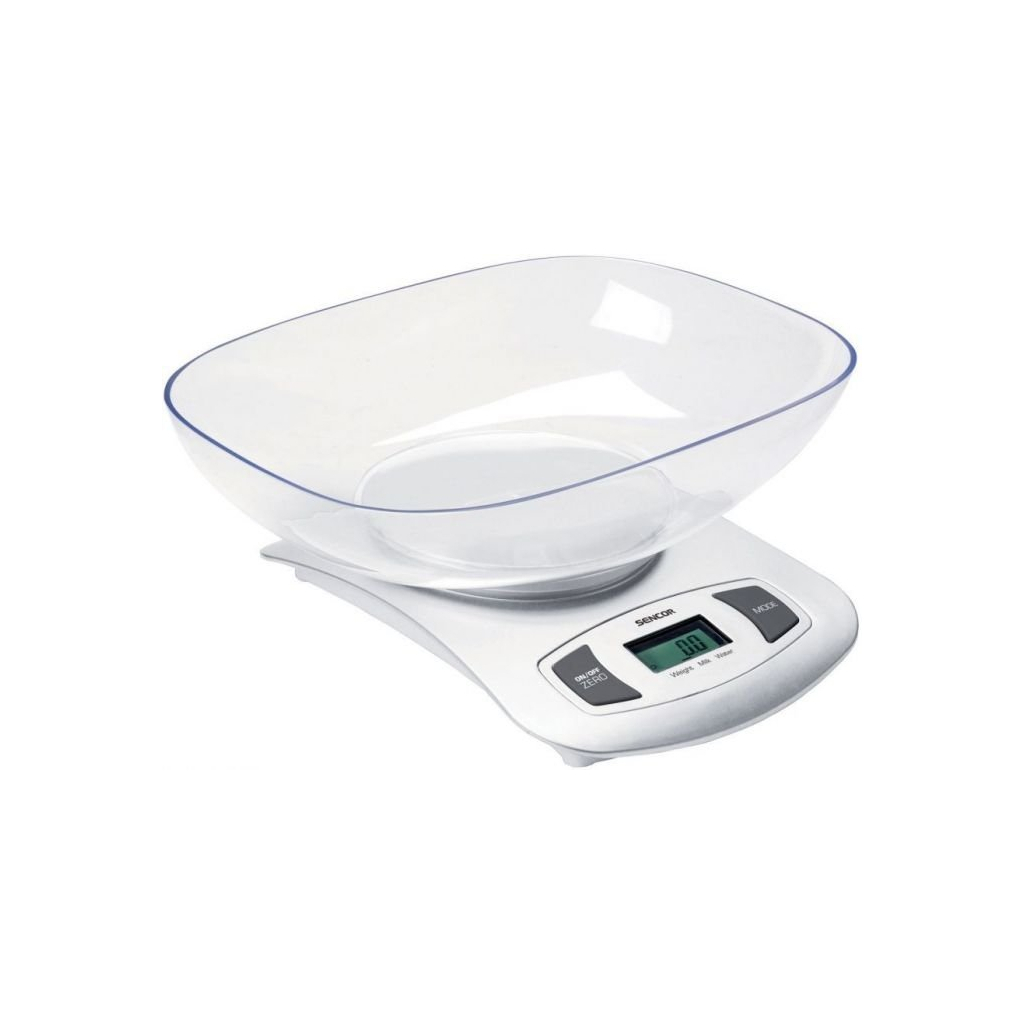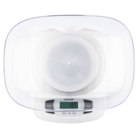 | Тип - електронні, Конструкція - з чашею, максимальна вага зважування - 5 кг, градація - 1 г, одиниці вимірювання - г, унція, мл, Колір - білий |