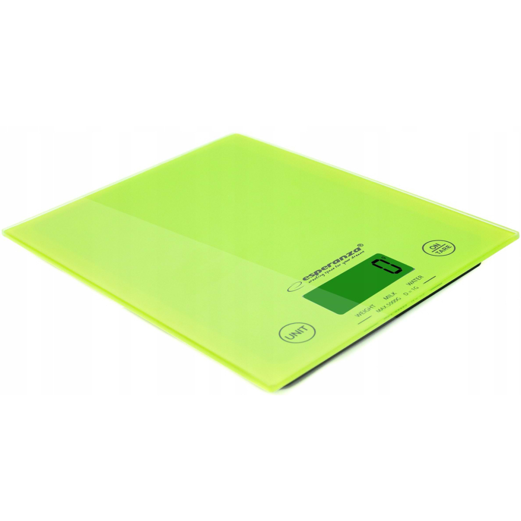 | Тип - електронні, Конструкція - з плоскою платформою, максимальна вага зважування - 5 кг, градація - 1 г, одиниці вимірювання - г, кг, фунт, унція, Колір - зелений |