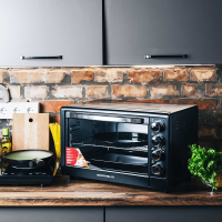 | Потужність - 2200 Вт, об'єм духовки - 50 л, розміри - 58.3 х 41 х 37 см |