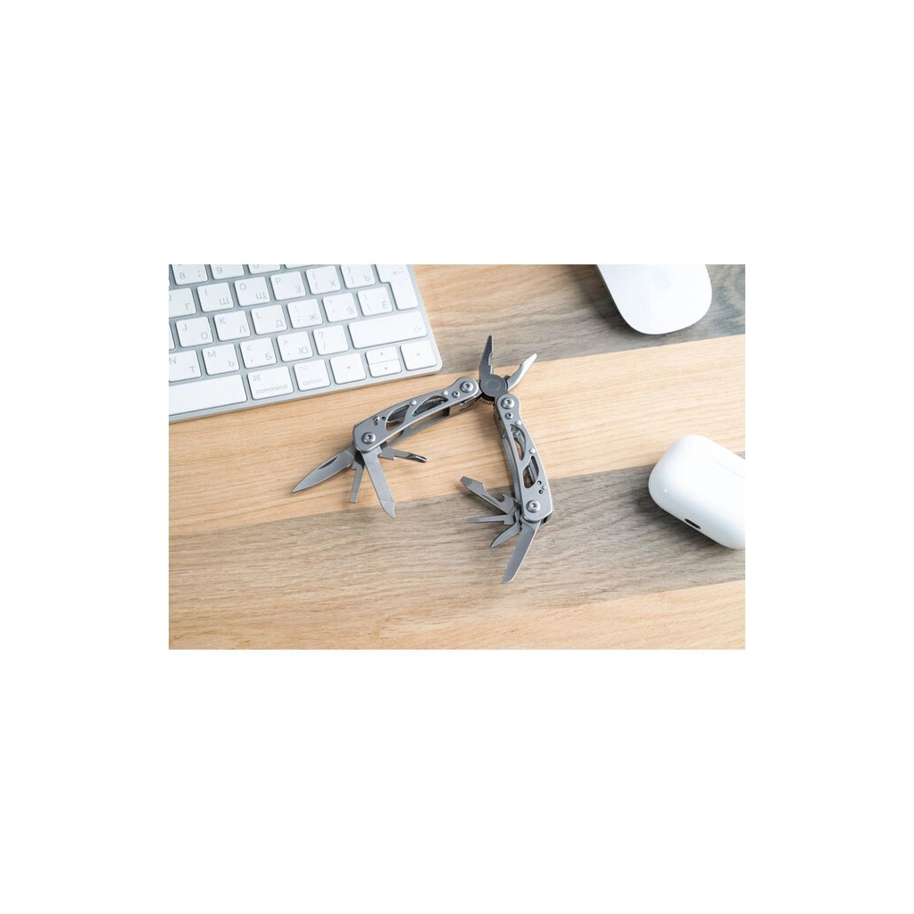 | Інструменти в комплекті | Шило, Плоскогубці, Пилка для нігтів, паз для зняття ізоляції, ніж з серрейтором, Ніж, Гострогубці, Викрутка хрестова, Викрутка плоска середня, викрутка маленька, Відкривачка для пляшок |