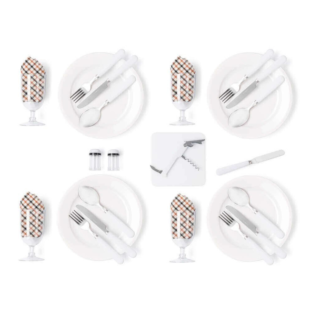 | Комплектація | штопор, тарілка, 4 шт, серветка, 4 шт, ніж-пилочка, ніж, 4 шт, ложка, 4 шт, келих, 4 шт, дощечка, виделка, 4 шт, відкривачка, ємність для солі і перцю, 2 шт |