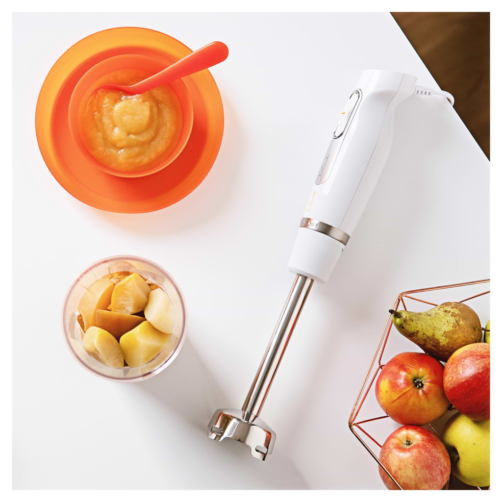 | занурювальний, 800 Вт, Ємність склянки - 0.7 л, без подрібнювача, кількість швидкостей - 2, імпульсний режим - так, турборежим - так, 1.25 кг, білий, сріблястий |